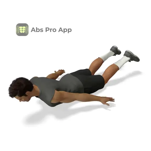 - Start lying face down with legs straight and arms set in an A position.