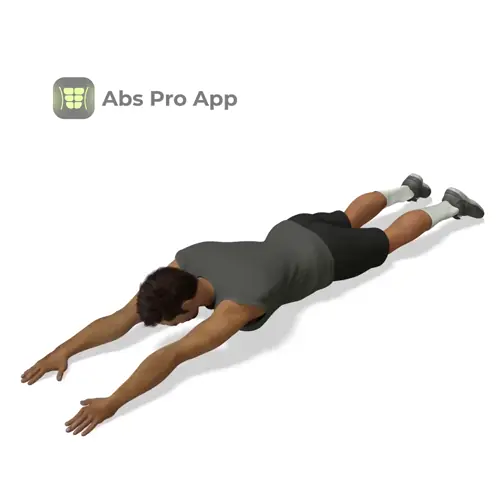 Lie face down on a mat or comfortable floor surface. Extend your arms straight overhead, with biceps close to your ears and palms facing down. Your legs should be fully extended behind you, resting on the floor with the tops of your feet down.