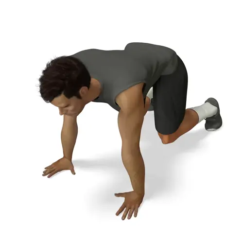 - Bear plank shoulder tap plus knee lift, slightly lift the opposite knee during the tap.