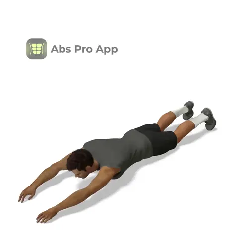 - Start lying face down with arms straight overhead and legs extended.