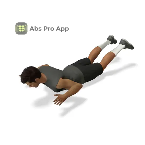 Start by lying face down on the floor on a mat or soft surface. Extend your legs straight behind you with the tops of your feet resting lightly on the ground. Your legs stay straight throughout the exercise, not bent.